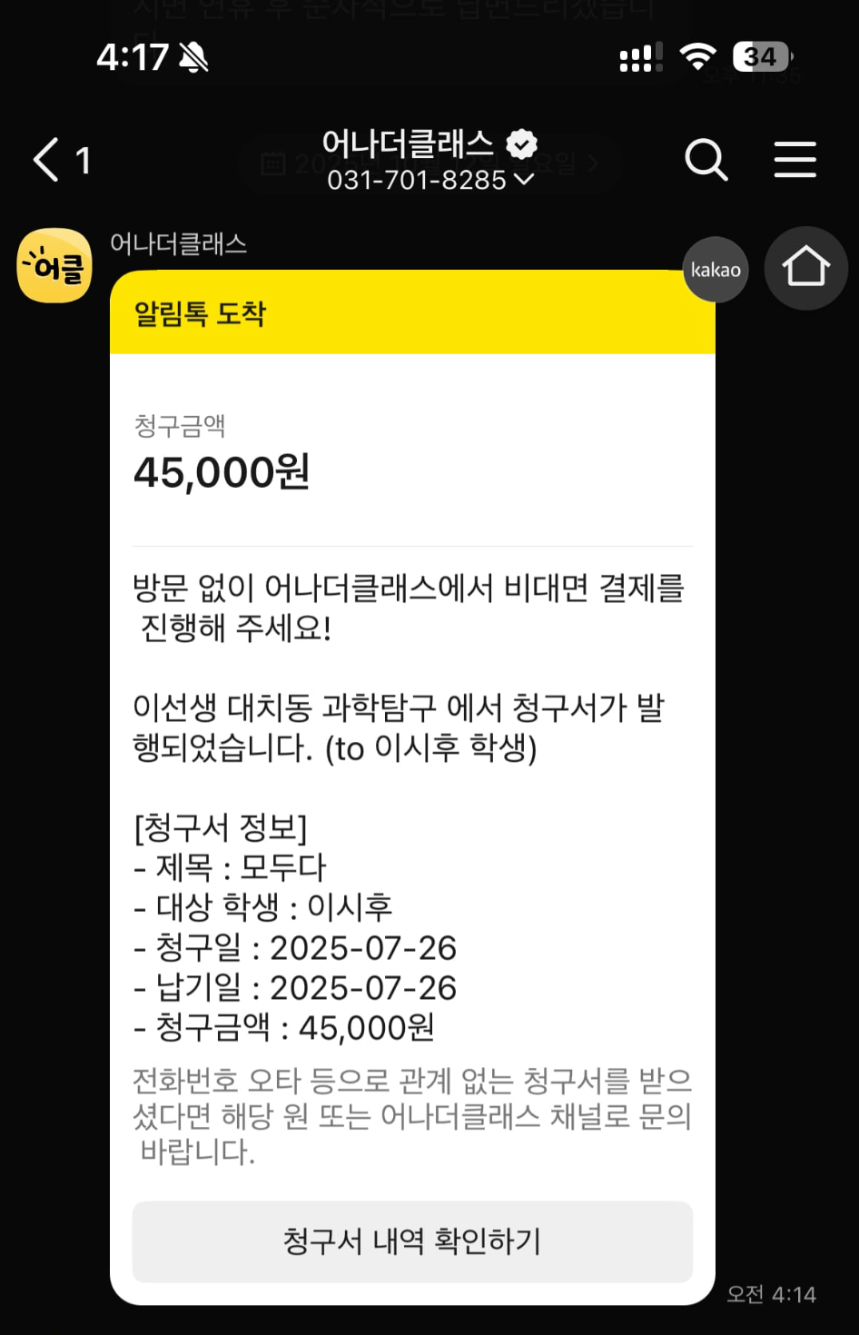 [faq] 결제시 어떤 부분에서 비용이 들 수 있나요? Last updated on 2026년 1월 15일 결제시 돈이 들 가능성이 있는 부분을 설명드릴게요.100명을 초대했는데 80명이 협조하고 20명이 안깔고 있다면 20명에게는 알림톡으로 전달할 수 있습니다. 단순히 금액전달 + 설치유도는 건당 16.5원 (1건) , 결제까지 가능한 링크는 49.5원 (16.5원 3건) 입니다. 앱-더보기-원설정-문자메시지 설정에서 충전하시면 됩니다.샘플 화면은 이렇습니다.결제용 알림톡간단 알림톡 Previous [faq] 타인 지역화폐 사용방법 안내 Next [faq] 온라인 카드결제 부분취소