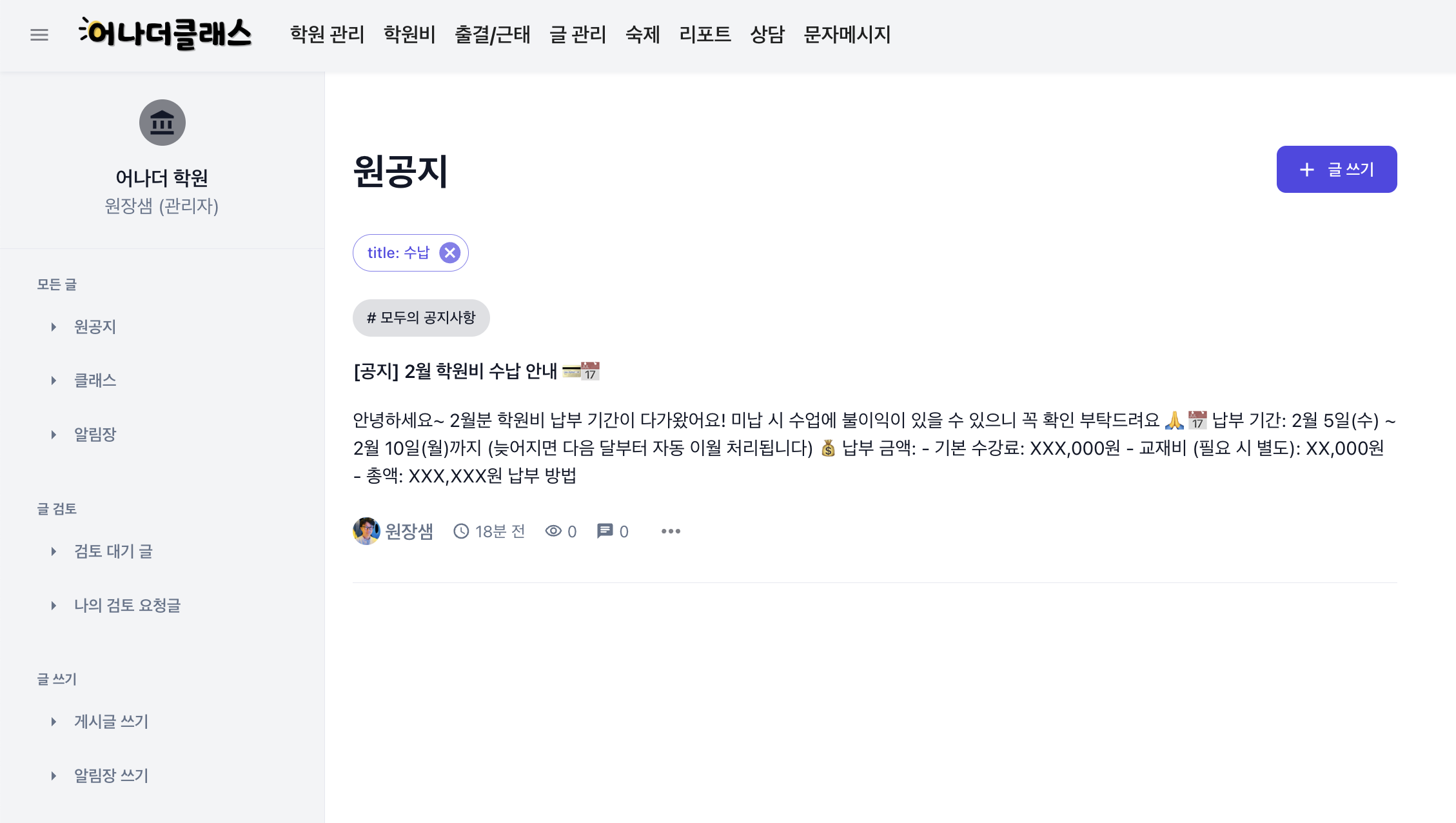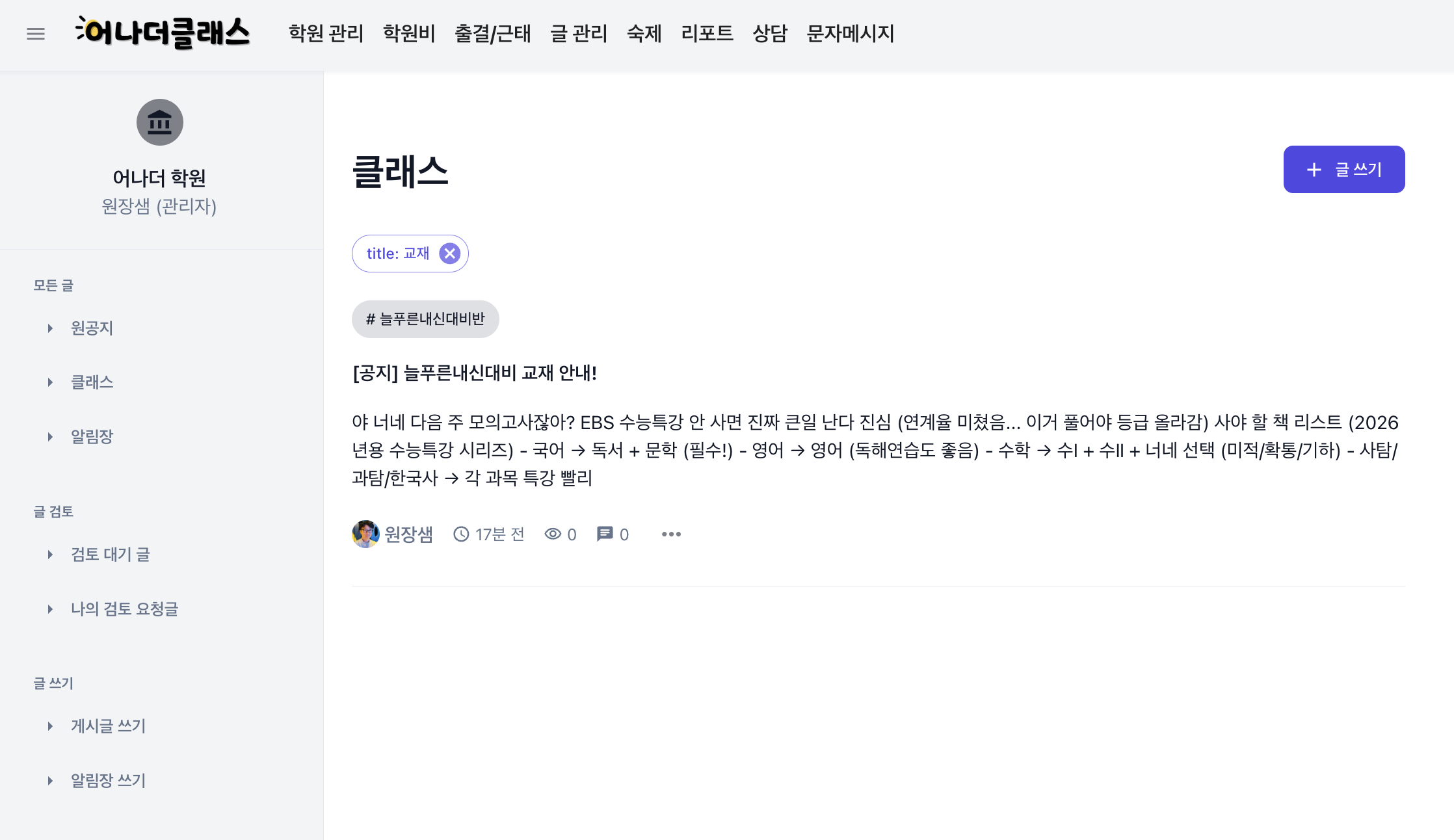 클래스 게시판에서