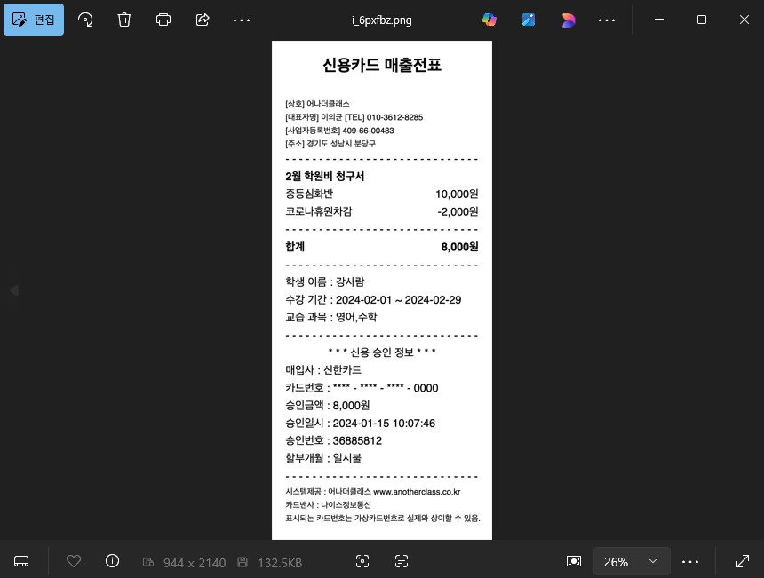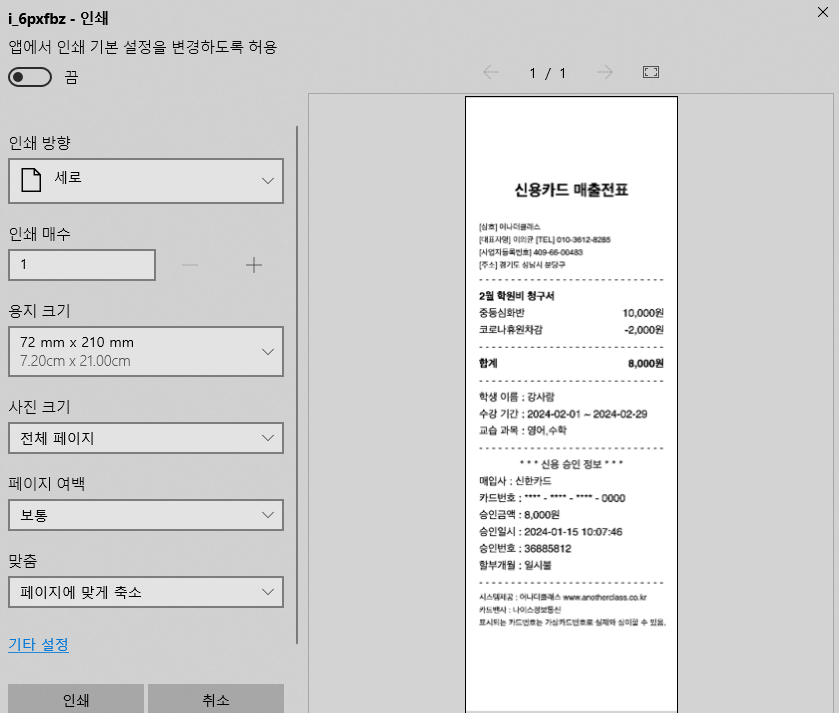 안녕하세요? 어나더클래스에서 비대면결제 혹은 단말기결제를 하고 나면 전표를 받을 수 있지요? 이를 특별히 감열지 프린터에 인쇄할 때 필요한 팁입니다.